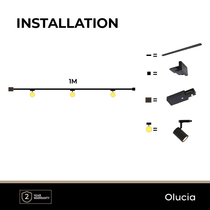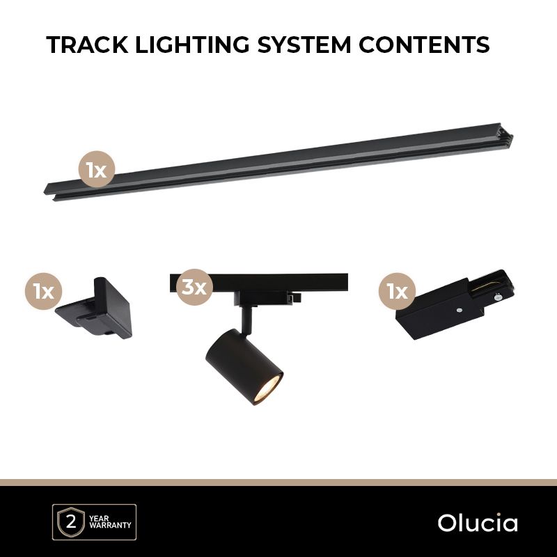 - 1M système d'éclairage sur rail monophasé noir + 3 Elena spots sur rail