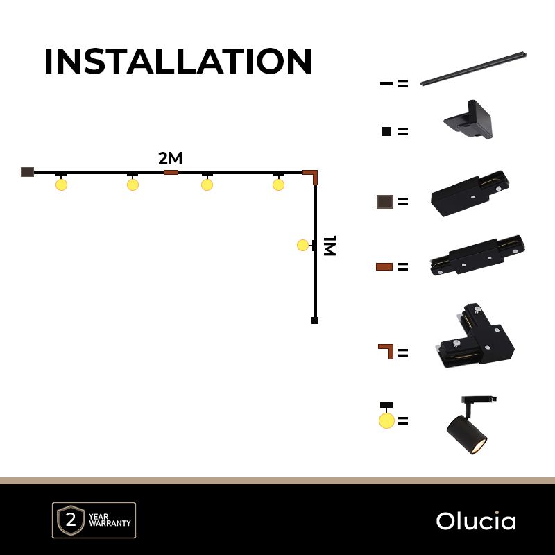 - 3M système d'éclairage sur rail monophasé noir avec connecteur fixe en L + 5 Elena spots sur rail