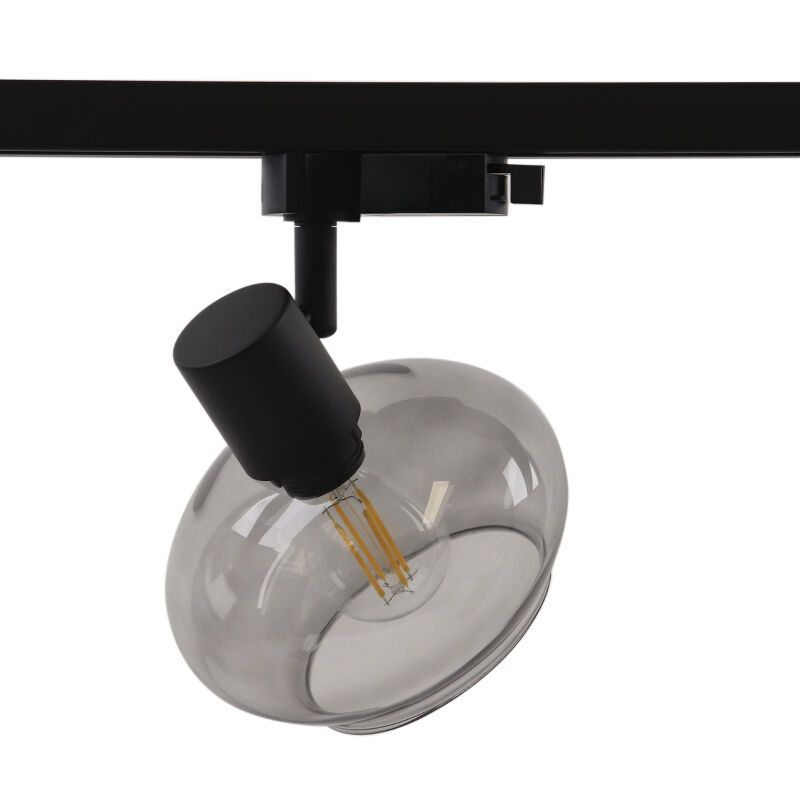 Le système d'éclairage sur rail monophasé en métal et verre Skip est de couleur noire. Le système d'éclairage sur rail monophasé noir est fournie sans sources lumineuses correspondantes. Cette lampe doit contenir 5 sources lumineuses avec raccords E14. La puissance maximale des sources lumineuses ne doit pas dépasser 25 watts par ampoule.