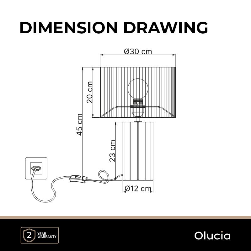Information produit Puissance maximale 40 Tension d'alimentation 220-240V Nombre de lumières 1 Type culot E27 Information produit Ampoule incluse Non Largeur en cm 30 Largeur de la plaque de base 12 Diamètre en cm 30 Hauteur en cm 45 Hauteur de la plaque de base 23 Longueur en cm 30 Longueur de la plaque de base 12 Dimmable Oui (non inclus) Garantie 2 ans Valeur IP IP20 (anti-poussière) Couleur Noir Matériel Tissu, Céramique Avec interrupteur Oui Avec cordon et fiche Oui Style Rustique Type de commutateur Interrupteur marche/arrêt sur le câble Numéro de l'article Q10672 - Accueil