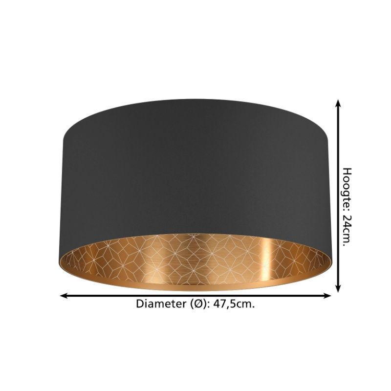 La lampe plafond moderne noir Kelsey est en tissu. La lampe plafond noire est fournie sans source lumineuse appropriée avec raccord E27. Des sources lumineuses à LED d'une puissance maximale de 40 watts peuvent être installées dans le luminaire.