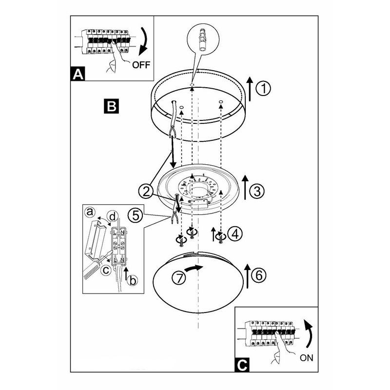 Prix Spécial 49,99 PVC : Prix normal 54,995-8 jours ouvrés Plafonnier blanc en métal, Abano- D: 57 cm, H: 15 cm