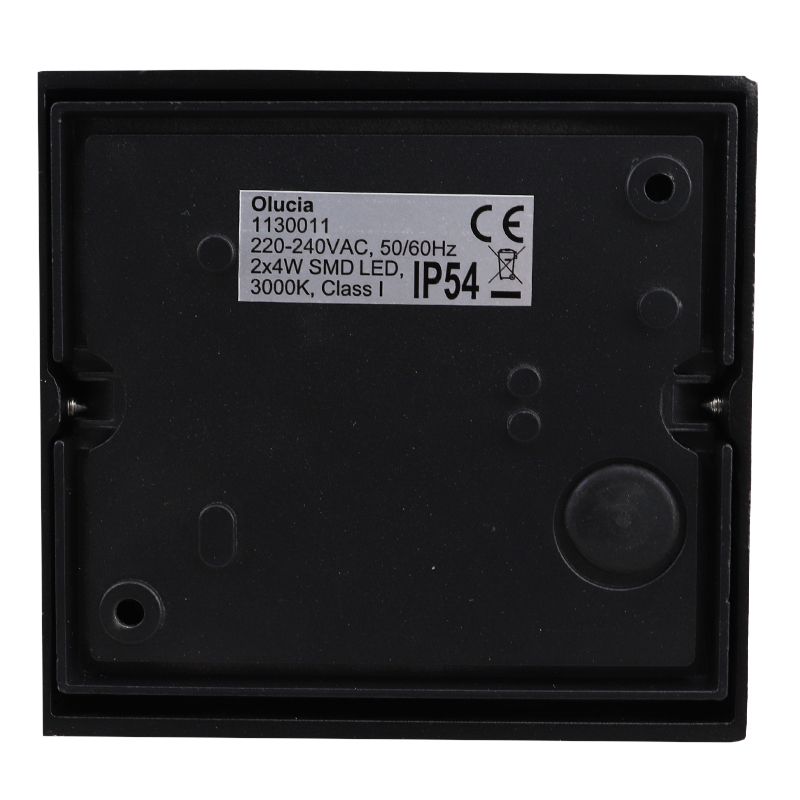 Information produit Puissance maximale 8 Tension d'alimentation 220-240V Energy label F Nombre de lumières 1 Information produit Nombre de lumens 600 Couleur claire 3000K (Blanc chaud) Type culot LED intégré Type de source lumineuse inclus LED intégrée Nombre d'heures de fonctionnement prévu 15000 Ampoule incluse Oui, intégré Largeur en cm 13 Hauteur en cm 12.3 Longueur en cm 7 Dimmable Non Garantie 2 ans Valeur IP IP54 (résistant à l'eau) Couleur Noir Matériel Aluminium Style Moderne Numéro de l'article Q36353 - Accueil