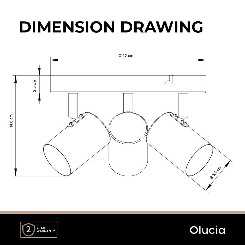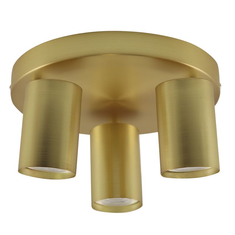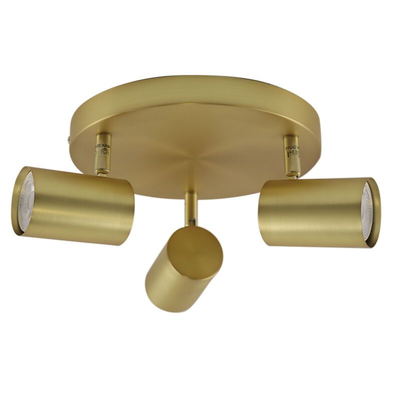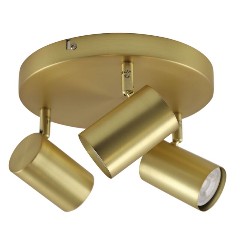Le spot plafond moderne en métal Elena est de couleur laiton. Le spot plafond laiton est fournie sans sources lumineuses correspondantes. Cette lampe doit contenir 3 sources lumineuses avec raccords GU10. La puissance maximale des sources lumineuses ne doit pas dépasser 35 watts par ampoule.