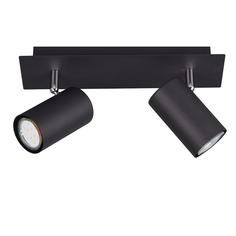 Le spot plafond noir Kaso a un style moderne et est en métal. Ce spot plafond noir a 2 raccords GU10 et est exclusive de 2 sources lumineuses correspondantes. La lampe peut accueillir des sources lumineuses d'une puissance maximale de 35 watts par ampoule.