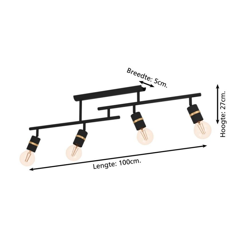 Le spot plafond noir Jelger est en aluminium. Le spot plafond noir est fournie sans sources lumineuses appropriées avec raccord E27. L'armature doit contenir 4 E27 installer des sources lumineuses LED avec une puissance maximale de 10 watts par ampoule.