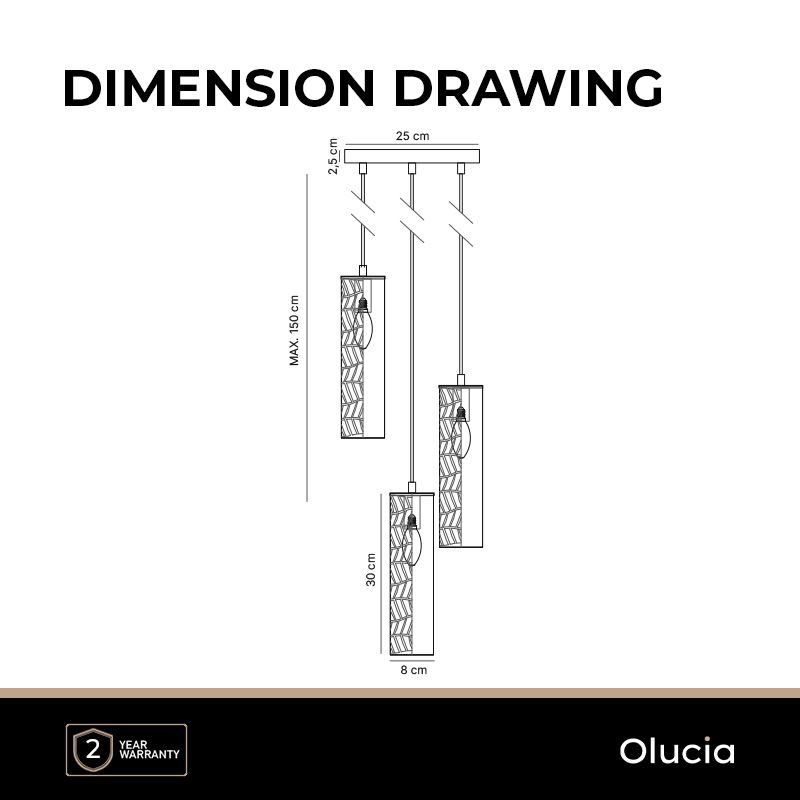 La suspension laiton Marli est en métal. La suspension laiton est fournie sans sources lumineuses correspondantes. Cette lampe doit contenir 3 sources lumineuses avec raccords G9. La puissance maximale des sources lumineuses ne doit pas dépasser 40 watts par ampoule.