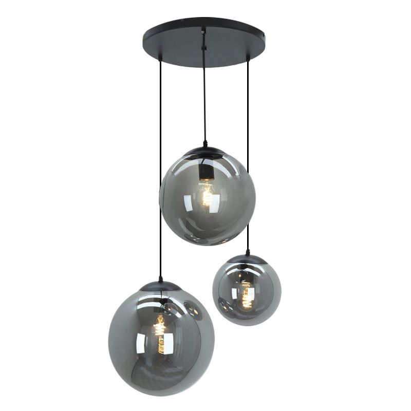 La suspension design en verre Dolf est de couleur noire. La suspension noire est fournie sans sources lumineuses correspondantes. Cette lampe doit contenir 3 sources lumineuses avec raccords E27. La puissance maximale des sources lumineuses ne doit pas dépasser 40 watts par ampoule.