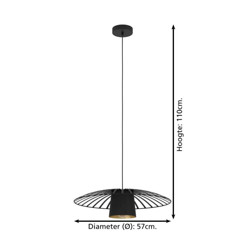Prix Spécial 199,- PVC : Prix normal 209,-5-8 jours ouvrés Suspension noire en acier, Silva- D: 17 cm, H: 110 cm