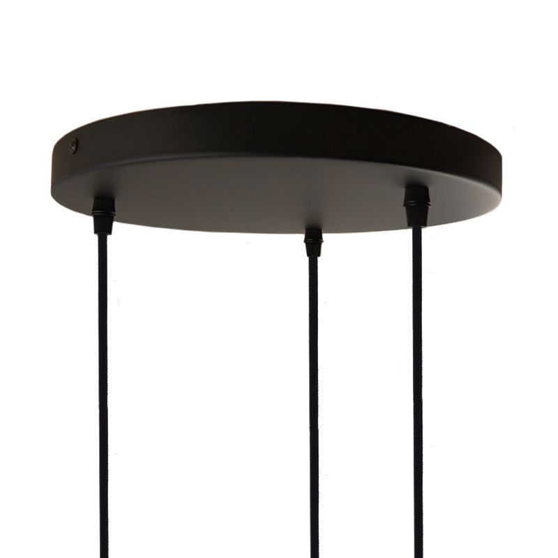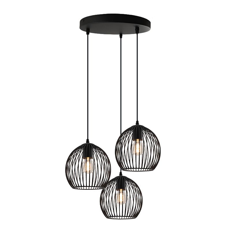 La suspension industrielle en métal Wiro est de couleur noire. La suspension noire est fournie sans sources lumineuses correspondantes. Cette lampe doit contenir 3 sources lumineuses avec raccords E27. La puissance maximale des sources lumineuses ne doit pas dépasser 60 watts par ampoule.