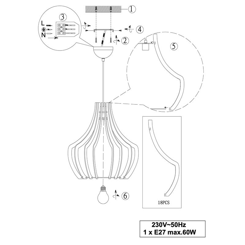 La suspension bois Valenthina a un style rustique et est en bois. Cette suspension bois a un raccord E27 et est fourni sans source lumineuse correspondante. La lampe peut accueillir des sources lumineuses d'une puissance maximale de 60 watts.